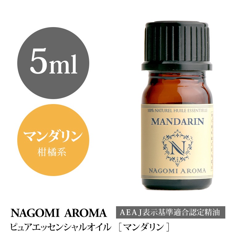 甘くフルーテイな香りでフレッシュな中にもフローラル調が漂います。柑橘系の中でももっとも穏やかで、使いやすい香りです。 ※時期やロット、またモニターの環境により色味が異なる場合がございます。 ポジティブ エッセンシャルオイルとは、植物の花や葉、果皮、樹皮、根、種子、樹脂などから抽出した、100%天然の芳香性物質だけを呼びます。ピュアでナチュラルな自然本来の香りをお楽しみいただくことができます。 大量の植物からほんの僅かしか採れない希少なもので、まさに植物の生命力を凝縮したエッセンスです。植物に含まれる有効成分を高濃度に濃縮しています。 アロマテラピーで使用する際は、100%天然の「エッセンシャルオイル」をご使用ください。 NAGOMI AROMAは『公益社団法人日本アロマ環境協会』が定める表示基準に適合し認定された精油ブランドです。 安心してお使いください。 | 学名 | Citrus reticulata | | ノート | トップ | | 英名 | | 粘性 | | | 科名 | ミカン科 | 香りの系統 | 柑橘系 | | 産地 | イタリア ※時期やロットよって変更する場合がございます。 | 香りの特徴 | 甘くフルーティーでフレッシュな柑橘系の香り | | 抽出部位 | 果皮 | 香りの強さ | | | 精油製造方法 | 冷却圧搾法 | キーワード | ポジティブ | | ご注意事項 | | Other ItemsSize Variationサイズバリエーション