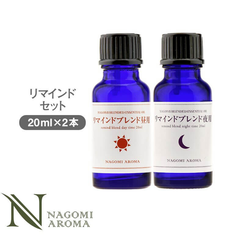 ![リマインドセット内容[昼用]集中力と気持ちを高める香り[夜用]心と身体をリラックスさせる香り](https://image.rakuten.co.jp/nagomisabo/cabinet/img_aroma/p_blend/remind_make_d.jpg) ![リマインドセットのメリット[1]ブレンド済みだから、手間なし。[2]昼間は元気を聞いてキープ、夜はリラックスしながらぐっすりと。アロマの香りで生活に潤いを。[3]ギフトにも喜ばれるお得なセット](https://image.rakuten.co.jp/nagomisabo/cabinet/img_aroma/p_blend/remind_make_e.jpg)