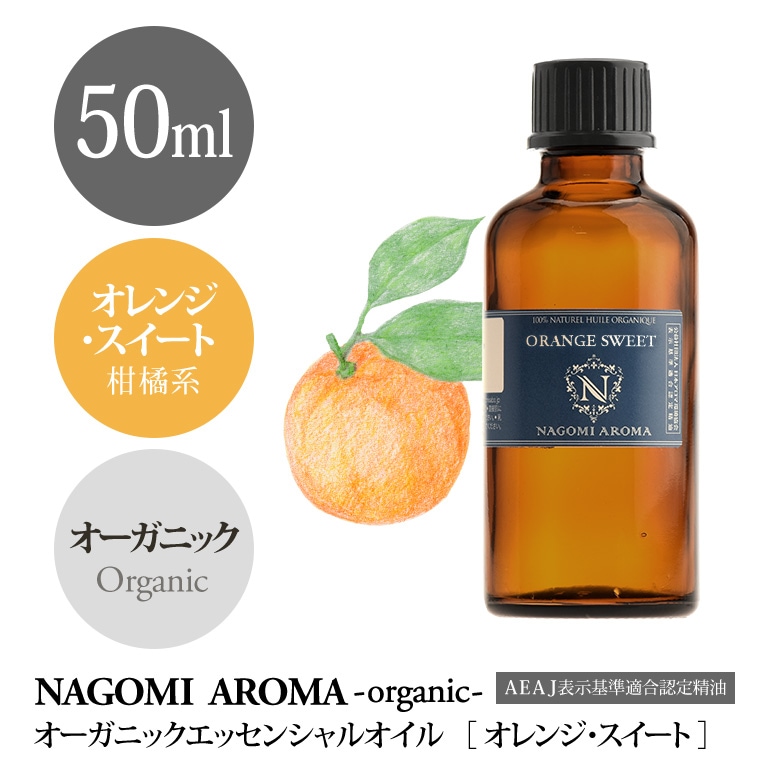 柑橘系の代表的なエッセンシャルオイルです。まるで果実を絞ったばかりのようなフレッシュで甘くさわやかなオレンジの香りは、誰からも好まれるのでアロマビギナーやプレゼントにもおすすめです。 ※時期やロット、またモニターの環境により色味が異なる場合がございます。 リラックス About 樹高10mほどになる常緑高木。原産国は意外にもインドや中国と言われています。15世紀にポルトガルへと渡り、地中海沿岸の国に伝わりました。19世紀にアメリカへ伝わり、明治時代には日本にも渡ってきました。現在はカリフォルニア、スペイン、イタリア、南米などが主な産地となっています。代表的な品種は、バレンシアや、ネーブルがあります。エッセンシャルオイルで使用されるオレンジにはスイート種とビター種(だいだい)があります。ビターオレンジのエッセンシャルオイルはあまり流通していませんが、花からネロリ、葉からプチグレンが抽出されます。オレンジスイートの香りは、ヨーロッパではシナモンとともにクリスマスシーズンの香りとして親しまれています。また、乾燥した果皮は「陳皮」として日本でもおなじみです。 エッセンシャルオイルの商品開発時に、様々なオイルをスタッフと試したのですが、どのスタッフにも人気だったのがオレンジスイート。他のオイルは好みが分かれることが少なくないのですが、オレンジやレモンは全員の全員の意見が一致。「いい香りだね」とため息がもれていました。自宅で芳香浴を試した際には、幼稚園に通っている子どもが「みかんはどこにあるの?」と台所を探すくらいフレッシュ感があふれるアロマです。太陽の光が差し込んだような明るいイメージの香りなので、曇りがちな天気が続く季節などにおすすめです。 Details オーガニックとは、化学的に合成された肥料及び農薬を使用せずに、土壌の性質に由来する農地の生産力を発揮させ自然と融合する [ 有機農法 ]で生産された農作物のことです。 日本の有機認証制度は食品にしか対応していないため、日本での規格にはありませんが、オーストラリアの認証機関【ACO】の規格により認証された商品を輸入し、国内でパッキングしてお届けしています。 | 学名 | Citrus sinensis | | ノート | トップ | | 英名 | Orangesweet | 粘性 | 低い | | 科名 | ミカン科 | 香りの系統 | 柑橘系 | | 産地 | メキシコ ※時期やロットよって変更する場合がございます。 | 香りの特徴 | 甘みと温かさのある柑橘系の香り | | 抽出部位 | 果皮 | 香りの強さ | 中〜強い | | 精油製造方法 | 圧搾法 | キーワード | リラックス | | ご注意事項 | | Other ItemsSize Variationサイズバリエーション Other VariationNAGOMI PURE シリーズはこちら