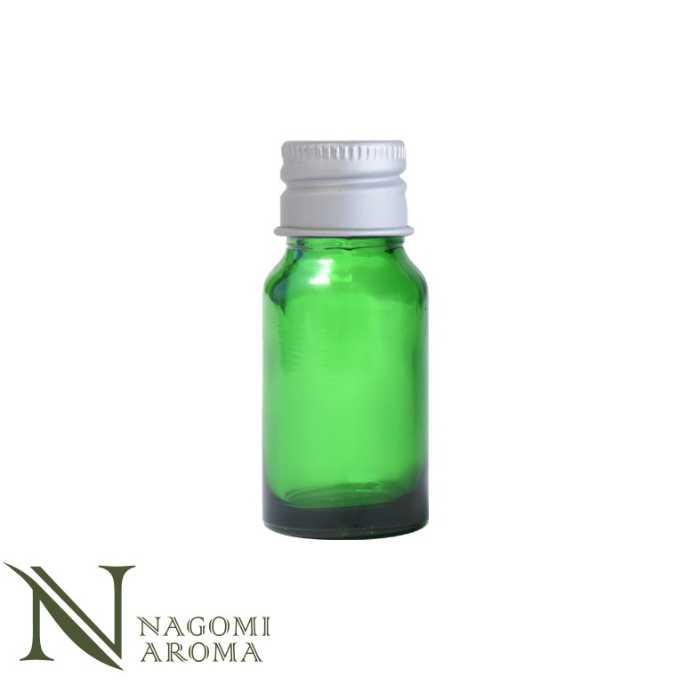 遮光瓶(グリーン)にドロッパーとアルミキャップがついています。オイルの小分けや、ブレンド用に。